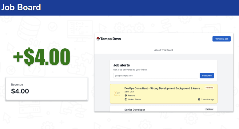 Although our job board has only generated $4 in total revenue, it's appreciated by members and recruiters alike. We currently charge $1 per job posting to protect against spam, and see tons of potential for its future growth.